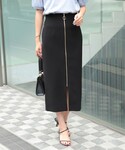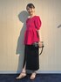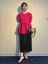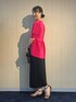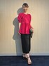 ノーリーズソフィー新作コーディネートのご紹介。 トップスは、ペプラムデザインとパフスリーブがポイントのニット。 もちっとしたふくらみのある生地感のニットで、着るだけでしっかりと形が決まるデザインニットです。 ウエストの高めの位置で切り替えがあるので、お腹周りをカバーしつつ、スタイルアップ効果もあります。 スカートは、フロントのジップデザインがポイントのノーリーズソフィー定番タイトスカートの新型です。 少し長めの着丈が旬な印象で、深めのフロントスリットが女性らしいです。 鮮やかなピンク×ブラックで、大人のカラーコーディネートに仕上げました。