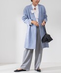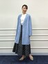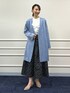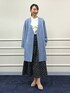 ノーリーズソフィー、人気アイテムを使ったコーディネートのご紹介。 アウターは、人気のダンボールスエード素材のノーカラーVネックコートです。 ストレッチ性抜群の素材で、着心地が軽くて快適です。 Vネックですっきりとしたデザインで、さらっと羽織るだけでこなれた雰囲気になります。 前はゴールドの金具のフックで留めるタイプなので、開けて着た際もおしゃれな印象です。 インナーに着たブラウスは、胸元のラッフルが女性らしいです。 スカートは、飯豊まりえさん着用で人気のドットグログランタックフレアースカート。 程よい光沢とボリューム感がドラマティックなスカートです。 グレイッシュブルーのコートにドットスカートを合わせて、大人かわいいコーディネートに仕上げました。