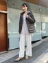 ノーリーズ、新作ダウンを使ったコーディネートのご紹介。 程よいボリュームのダウンで、着丈も腰回りはカバーしつつ、長すぎないのでバランスが取りやすいです。 ダウンの量を部分的に調整しているため、暖かいのに、着膨れしないようなデザインになっています! フードは取り外し可能で、カジュアルからきれいめまで幅広くコーディネートできます。 スナップボタンもカジュアル見えしすぎない、ゴールドのおしゃれなデザインです。 ニットは、HAMILTON/ハミルトンのウール糸を使用したVネックプルオーバー。 ヒップが隠れる着丈で、大人の抜け感のあるニットです。 パンツは、リラックス感のあるセミフレアパンツ。 程よく肉感のあるジャージライクなダブルクロス素材で、きれい見えします。 カーキのダウンに、やわらかいニュアンスカラーを合わせて、大人のきれいめカジュアルコーデに仕上げました。