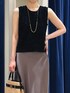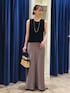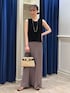 ノーリーズソフィー、おすすめ新作アイテムのご紹介。 トップスは、ジャガードフリンジノースリーブプルオーバーニット。 繊細なフサフサとしたフリンジがポイントのサマーニット。 1枚で着ても、ジャケットなどのインナーとして着ても着映えるニットです。 スカートは、ヴィンテージダブルサテンナロースカート。 大人気マットサテンナロースカートの生地を新たにした新型です! 38サイズ着用でくるぶしも隠れるロング丈で、少しカジュアルめに合わせました。 ブラック×カーキで、大人な雰囲気の夏コーデに仕上げました。 ------------------------------------ Instagramでは ライブなどで商品紹介しています ▶︎▶︎ @ikeo_nol ◀︎◀︎ ------------------------------------