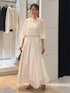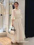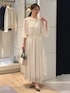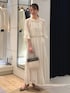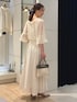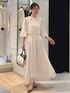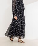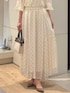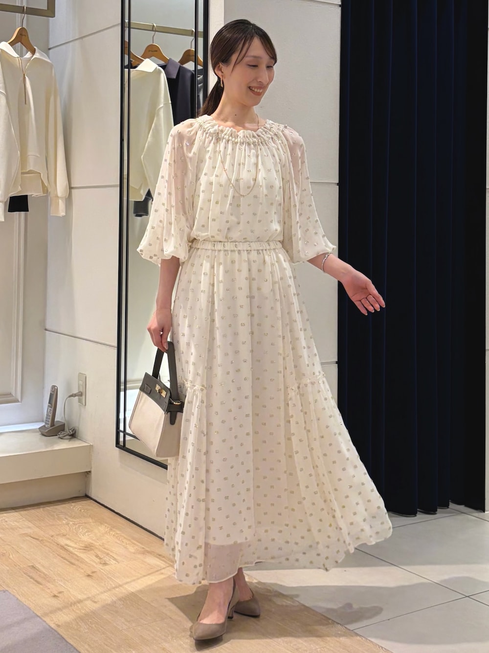 ノーリーズソフィーおすすめ新作セットアップのご紹介。 ジャガードの有名な産地、桐生のジャガード素材を使用したブラウスとスカート。 金糸のカットジャガードがドットのように施された華やかなセットアップ。 トップスは、ギャザーがたっぷりと入ったふんわりとしたデザイン。 襟ぐりにはゴムが入っていてオフショルにもなります。 シアー感があって涼しげな印象です。 同素材のスカートはサイドのギャザー切替があり、動きのあるフレアロングスカート。 裏地付きで安心です。 ウエスト1周ゴムで、内側のドローコードで調整可能のワンサイズ。 ジャガード生地が華やかで女性らしい、華やかなシーンにもおすすめのセットアップです。 ------------------------------------ Instagramでは ライブなどで商品紹介しています ▶︎▶︎ @ikeo_nol ◀︎◀︎ ------------------------------------