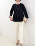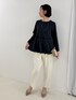 一枚できちんと見えするのに、柔らかくて着心地がラクで驚きました! ダンボールニット×タフタの異素材ドッキングが上品で、シンプルなのにしっかり華やか。 ペプラムの立体感がきれいで、お腹まわりや腰まわりを自然にカバーしてくれます。 伸縮性があって長時間着てもストレスなし。 パンツ合わせで通勤・オフィスカジュアルに、きれいめボトムと合わせればセレモニー・学校行事(卒入園)七五三にも使えますよ 「トップス何着よう?」と悩まない、大人のきれいめブラウス。 体型カバーも叶うのでおすすめです。