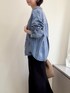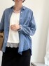 ▶︎トップス とにかく使えるデニムシャツ シアーとなっていますが透けはほとんどなく安心して着れます 柔らかでサラサラの着心地なので春はスウェットのインナー、夏は羽織として使えます 程よくゆったりサイズなのでお尻も隠れます デニムはカジュアル過ぎて、苦手な方こそにおすすめしたいシャツです