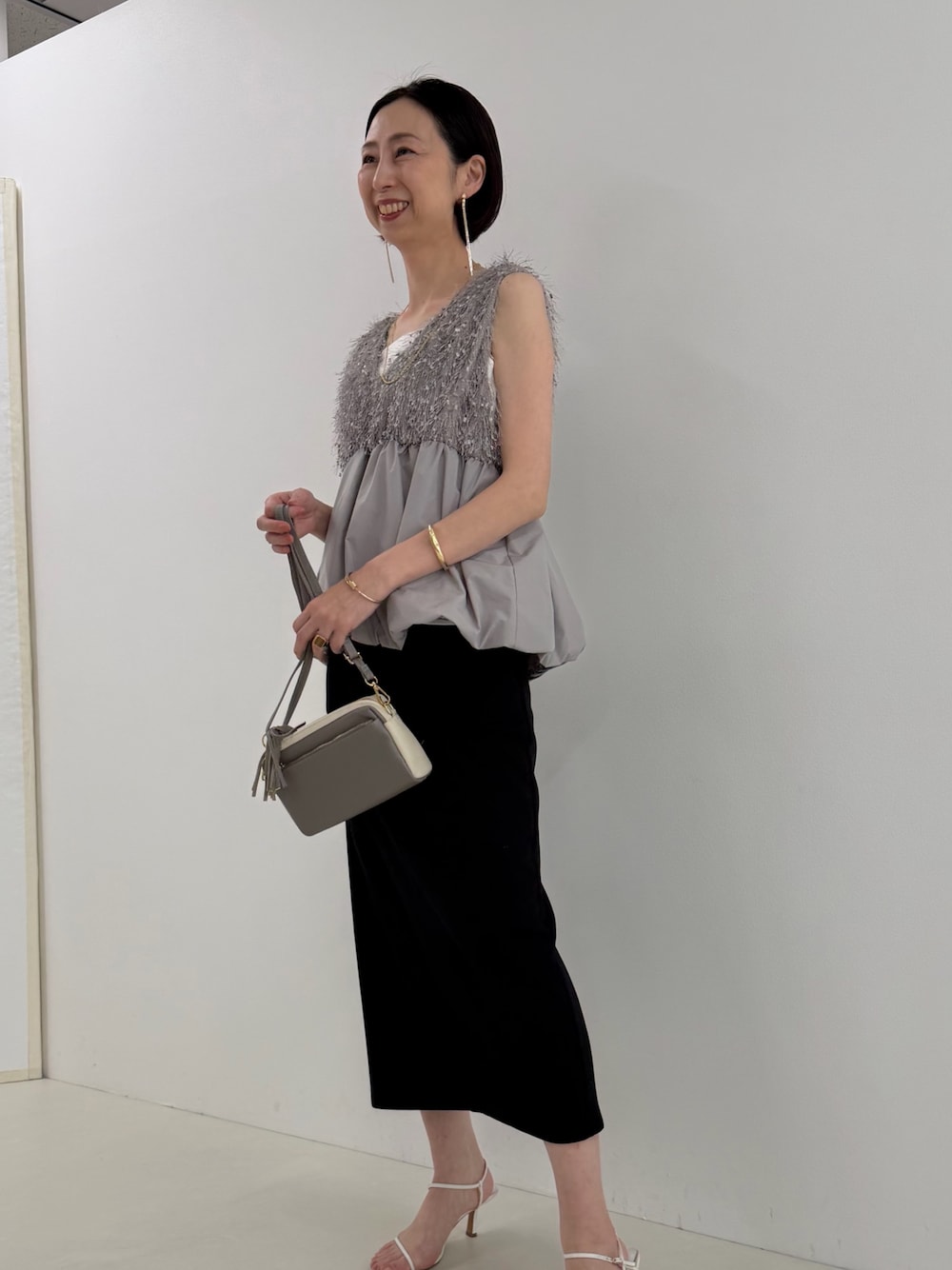 フェザーライクなフラッグヤーン素材が顔まわりを明るく見せてくれるベスト 春はシアーカットソーをインナーに、秋冬はリブニットインでシーズンレスに使えます ペプラム×バルーン裾のシルエットで自然に体型カバーも◎ 軽くて柔らかい着心地なので、 春ベスト / レイヤードコーデ / 大人カジュアル / きれいめコーデにもぴったり。 「シンプルコーデに1枚足すだけ」で 一気に着映えするので、春のプラスワンアイテムとしておすすめです