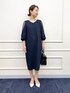 シンプルシルエットの人気のワンピース。 袖のシアー部分がニュアンスのあるレース柄にアップデート。 上品な透け感で、華やぎのシーンにも華美になりすぎないところが嬉しい! これからの季節にはコートの長さバランスも取りやすい着丈です。