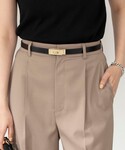トレンドのタック入りワイドパンツをジャケット代わりのジレスタイルで。 ※パンツは38サイズ着用です ベーシックカラーにブラックで引き締めました。 小物は、ラビオリを連想させる可愛いフォルムのバックと、シンプルなパンプス、細ベルトを合わせて綺麗目に。 縦長シルエットのポイントにネックレスは縦に長いタイプをセレクト。 ちょっとお出かけにも着られる綺麗目コーデです。
