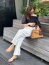 オフショルダーになるフェミニンなブラウスをホワイトデニムで普段使いに。 シンプルなコーデなので、キャメルの新作スエードバッグにはたくさんチャームをつけてアレンジ。 シンボノ✖️ノーリーズの別注バッグは、片面にスエードを使った秋まで使えるバッグです。 ザクザク入れやすいトートタイプでビーガンレザーが軽くて嬉しい。 少しづつアイテムを増やして新鮮に。 Instagram tiktokでもたくさんスタイリングをご紹介しています。 @kumi_nol