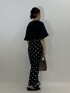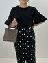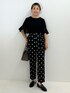 リネンライクのトップスをワントーンきれいめコーデ。 洗えてシワになりづらく、涼しいトップスは オンスタイルからカジュアルスタイルまで着用できます。 うれしい5分丈は9月などの暑い1番下にも活躍するアイテムです。 ボトムは新作のドットのパンツと合わせました。 ワントーンでもドットのパンツならクールになりすぎずまとまります。