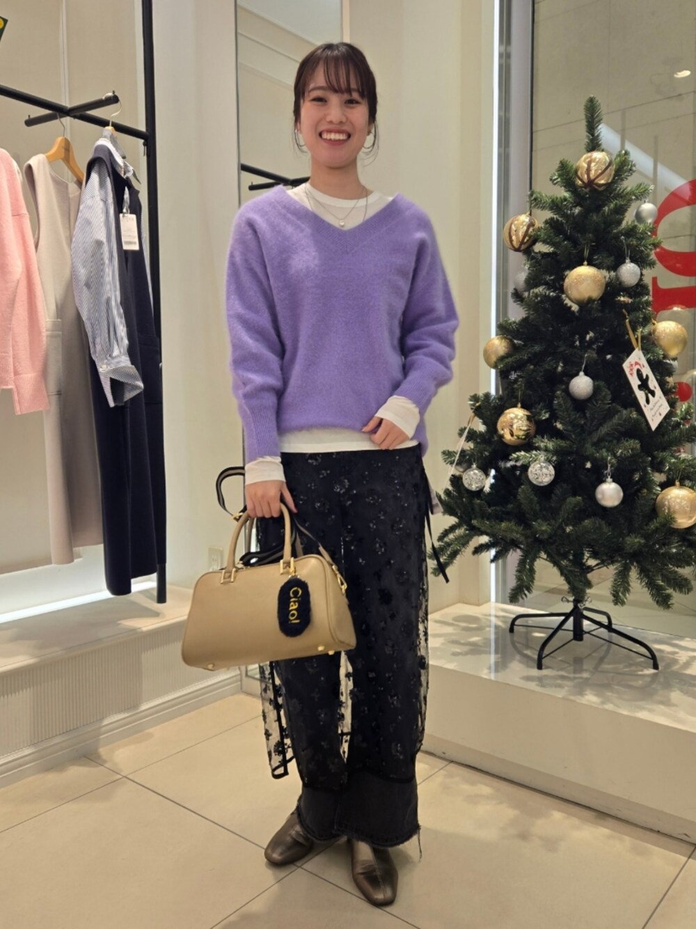 もーりー(ノーリーズソフィールミネ大宮店)のニット/セーター「カシミヤ混ヘアリー2WAYプルオーバーニット」を使ったコーディネート