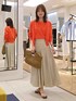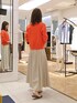 オレンジが映えるアンサンブルで、単品使いもおすすめ。 綿とポリエステルで軽くてさらっとした素材が魅力! 真夏でも快適に着用できます! オレンジ×ベージュ カジュアルに着られる今年らしい配色が好きです🍊 カーディガンを肩掛けや腰巻きにしていろいろ着こなししてみてください☺