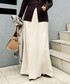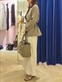 守屋さん別注のノーカラージャケットをベルトでウエストマークして、スッキリ見えるコーデにしました。 スカートが女性らしくキレイに見えて、よりエレガンス風な通勤コーデになります。 ジャケットインナーはサテンをチョイス! とことん女性らしく、お出掛けはもちろん式典やイベント行事などで使っていただけます。 シンプルなお仕事バッグにチャーム代わりでパールネックレスとシルクスカーフを付けてみました!