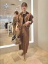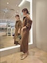 ブルゾンは見た目より軽い着心地で、着丈スッキリめです。 ヒップは隠れないですが、 腰骨よりは長いのでお腹周りは隠してくれ ます。 肩落ちでゆったりシルエットでインナーにシャツやニットを着ても大 丈夫です! 前ファスナーで着脱が楽なのもおすすめポイント! さっと羽織れるおすすめブルゾンです。 ニットはスクエアネックで首が長く、鎖骨が見える位置まで空くので鎖骨がキ レイに見えます。 肩に留め具が付いており、インナーの肩細を抑えることができます。 肩細がえないニットとしても上品に見してくれます。 特に首もとが詰まっているのが手な方はとてもおすすめです。 袖はスリットがあり、さらに女性らしく見してくれます。 スカートはトレンドのスエードスカート! ロング丈のタイトシルエットで、後ろスリット。 ロンフブーツ合わせも可愛いです。 ウエストはスッキリ見えるデザインで、ほんのりインゴム仕様。 ゴムのギャザーか苦手な方でも履きやすいです。