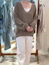 ベージュコーデ ニットはゆるっとくたっと感がとても可愛いです✨首元は広めのV開きで顔まわりがすっきりまとまります💡 お家で洗濯可能なのも嬉しいポイント💁🏼 insta:@sachipu_nol