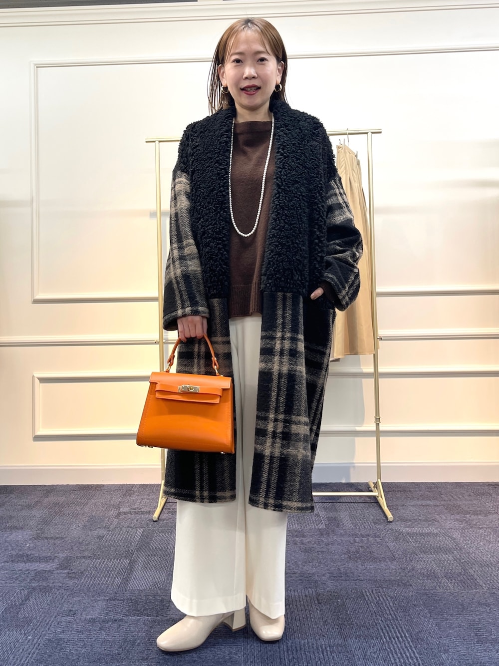 アウターはふわっとした生地で とても軽いです。 ガウンタイプで気軽に羽織るだけで スタイリングが完成します。