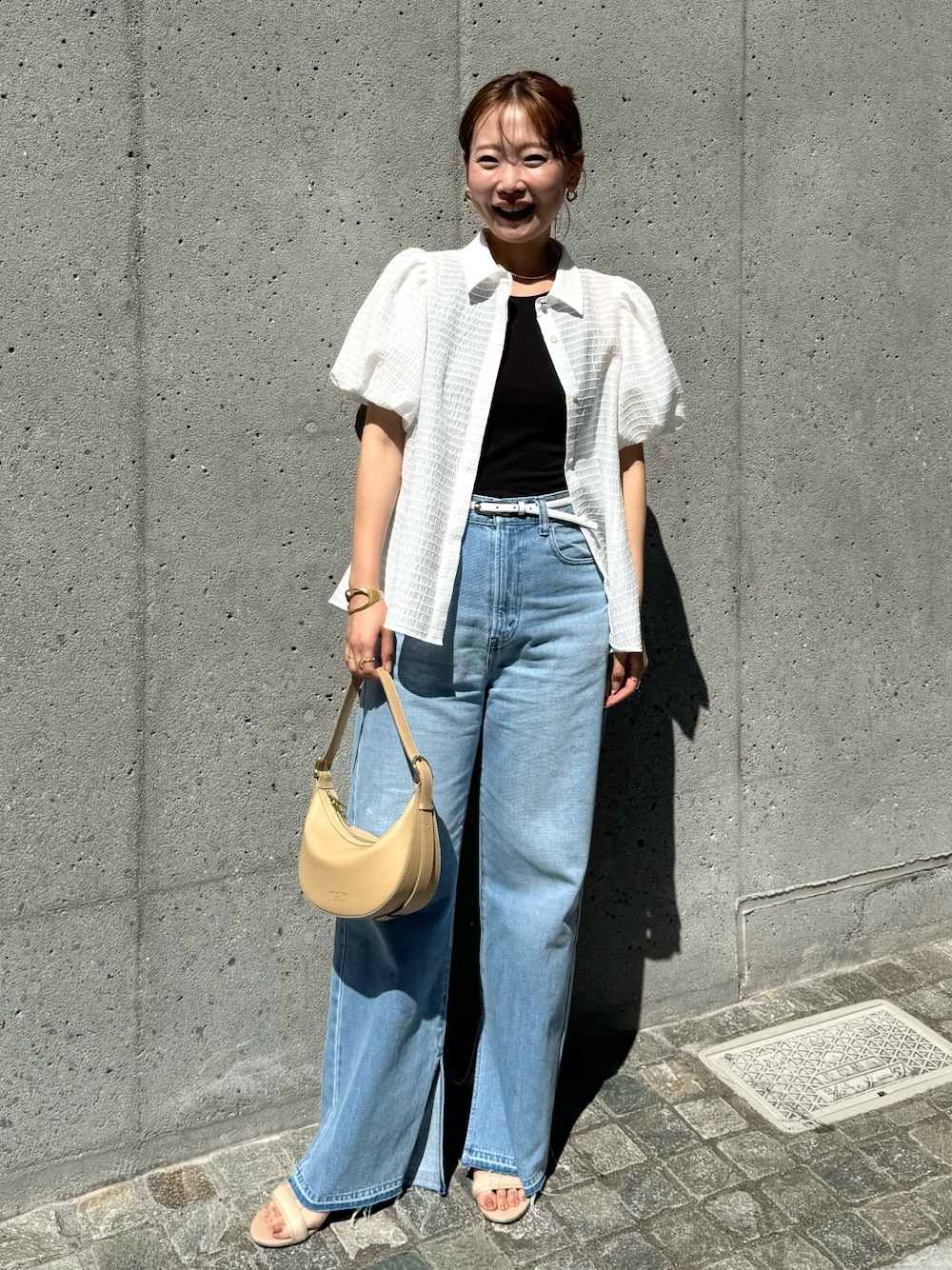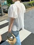 (ブラウス) ふんわりとしたデザインですが シアー素材なので軽やかにまとまります。 ボーダー柄はプリントでなく 糸でつくられており、 さり気ないポイントに。 (デニム) 柔らかい素材で穿きやすいです。 ハイウエストなので トップスはインしてウエスト位置を 見せてあげると脚長効果が アップします。 インスタにも色んなコーデ載せてます💡 よければ覗きに来てください😊 Instagram:@sachie_nol