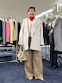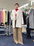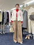 Holidayお出かけコーデ ホワイトとベージュをベースに 鮮やかな赤いニットをポイントで合わせ Holiday感のあるスタイリングに まとめました。 ニットはぴたっとしにくいシルエットで 楽に着られます。 ブラウスは前を開けても閉じても着られ それぞれ違った印象を楽しめます。 ボトムはハイウエストなので ニットをインして重心が上がって見えるよう スタイリングしました。 インスタにも色んなコーデ載せてます💡 よければ覗きに来てください😊 Instagram:@moriya_nol