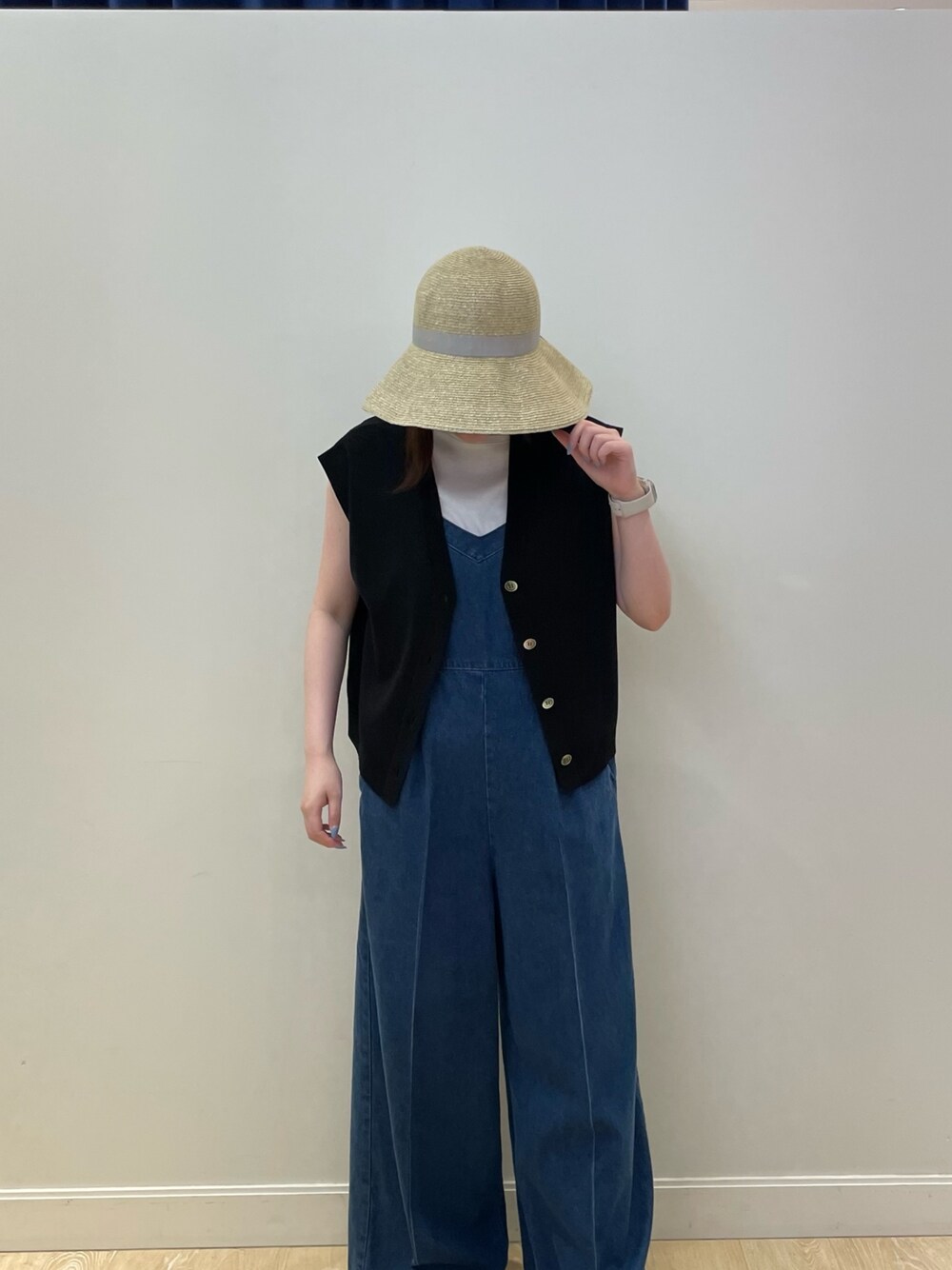 夏にピッタリコーデ✨ 楽に着れちゃうRMデニムのオールインワンに 安定の白を合わせました!! デニム×白は間違いありません👍🏻 このオールインワンは、肩紐タイプになっているので長さ調節可能です!私は今回長めな感じで着てみました😼 オールインワンと白ノースリーブだけでももちろん良いですが、今回はラメベストを合わせてみました! シンプルな色使いでラメ感も強すぎずで👍🏻 ラメベストは、肩周りが少し長めになっているので腕を少し隠してくれるのが🙆🏻♀️ なんとハットのリボン部分もラメになってます!シルバーラメのリボンハット、、なかなかないですよね!色味も凄く可愛いのでおすすめです✨ ツバもしっかりあるので、紫外線対策もバッチリです🙆🏻♀️ ぜひチェックしてみてください😽