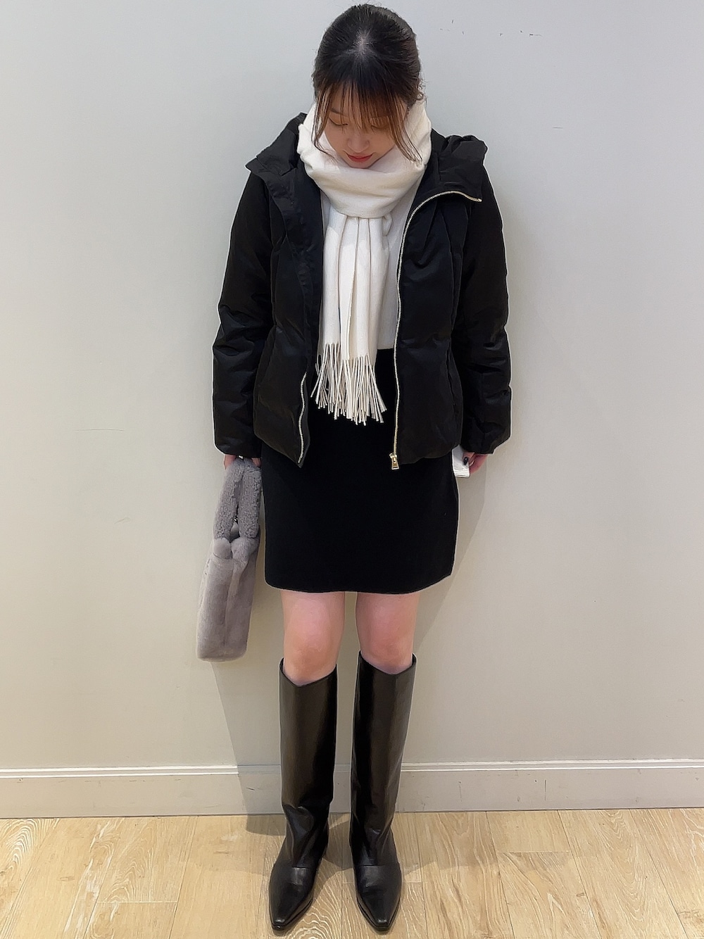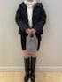 クリスマスデート風コーデ👫 今回のポイント✨ 白黒コーデとミニスカートと白マフラー🧣 ミラノリブミニスカートはニットスカートで履きやすい👍🏻 ウエストはゴムで伸縮性もあるので、ほんとに楽ちんです!! 私は腰でちゃんと履くと、骨格浮き出ちゃったのでウエスト高めに合わせてみました!でもそうすることで、個人的足が太く見えない丈感になって大満足💯 タイツと合わせてももちろん🙆🏻♀️ですが、デートコーデということでロングブーツ合わせで足見せ🐾 マフラーはウールカシミヤなのでチクチクせず、暖かく、長さもしっかりあってアレンジしやすい万能アイテムです!! マフラーは白!!な私からすると大優勝🏆🧣 敢えてニットと同じ色で合わせ、色がごちゃっとしないように可愛さ🆙 ダウンは、ホワイトダックダウン使用でほんとに軽いです! しっかり暖かく、撥水加工も入っているので冬の雪でも安心です❄️ 前後丈感が違っており、お尻周りカバーしてくれるのも助かります🙏 ニットはネックが苦手な私でも可愛いく着れます! カラバリ豊富で女性らしさアップできるアイテムの1つで取り入れると👍🏻 中にヒートテック等着なくても室内はしっかり暖かく、アウター着るとより暖かくなります✨ 大人な女性でも履けちゃうミニスカートになってますので、ぜひチェックしてみてください👀