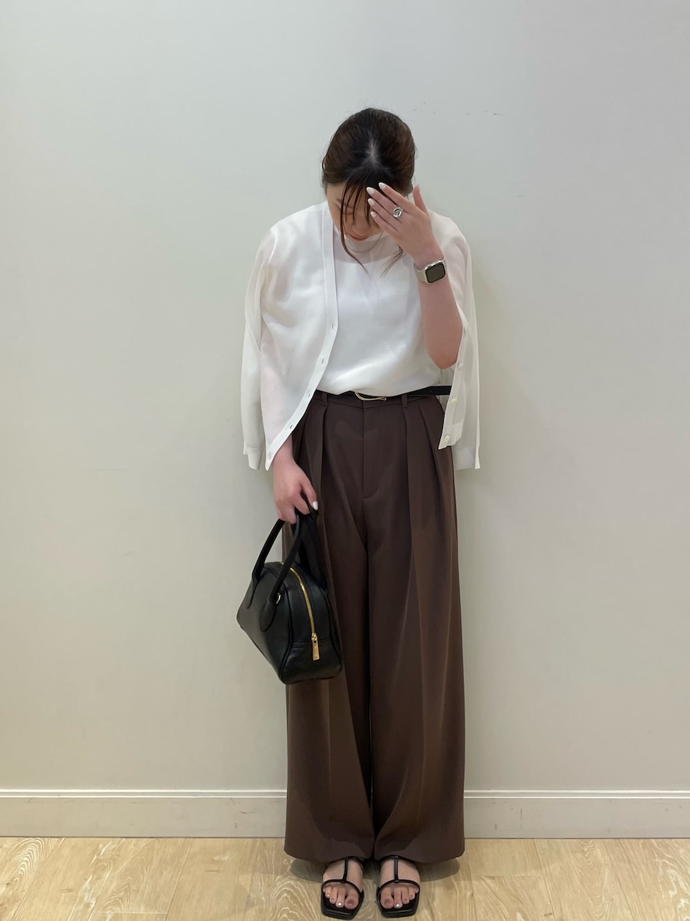 ⦿カーディガン シアー感のある軽やかな素材のVネックカーディガンでシンプルでどんなシーンやコーデにもマッチする1枚🌟 身幅はゆとりがあり、丈は少し短めのバランスで、様々なボトムと合わせやすいです! 今回のように肩掛けでも可愛いのでおすすめです🫣🫶🏻 ワンピースなどの上から1枚で羽織れるものになってます👍🏻 ⦿ノースリーブ カーディガンと同素材でシアー感のある軽やかな素材のノースリーブニットになります! シンプルでどんなシーンやコーデにもマッチする1枚で、こちらも身幅はゆとりがあり、丈は少し短めのバランスで様々なボトムと合わせやすいデザイン🌟 意外と腕周り気にならずで着やすいです!! ❣️アンサンブルとしても着れる2アイテムで通勤にもデイリーにも活躍する万能アイテムです! ⦿パンツ 定番人気のドライタッチのツイル素材を使用したワイドパンツで、超強撚素材になっておりさらっとしたタッチで落ち感のきれいな素材感! 洗濯後もシワになりにくく、アイロン要らずのイージーケアなのはこれからの時期に🙆♀️ 2タックでやや太めのシルエットにし今年らしさアップで、ストンと落ちる素材感のため、ワイドシルエットでもすっきり見えします👀 自然と手に取ってしまいましたが…トレンドカラーのブラウンは、どんなアイテムとも相性良いカラーなので使いやすいです! タックが入っているので、こちらもオンオフ兼用できる汎用性の高い1枚になってます!