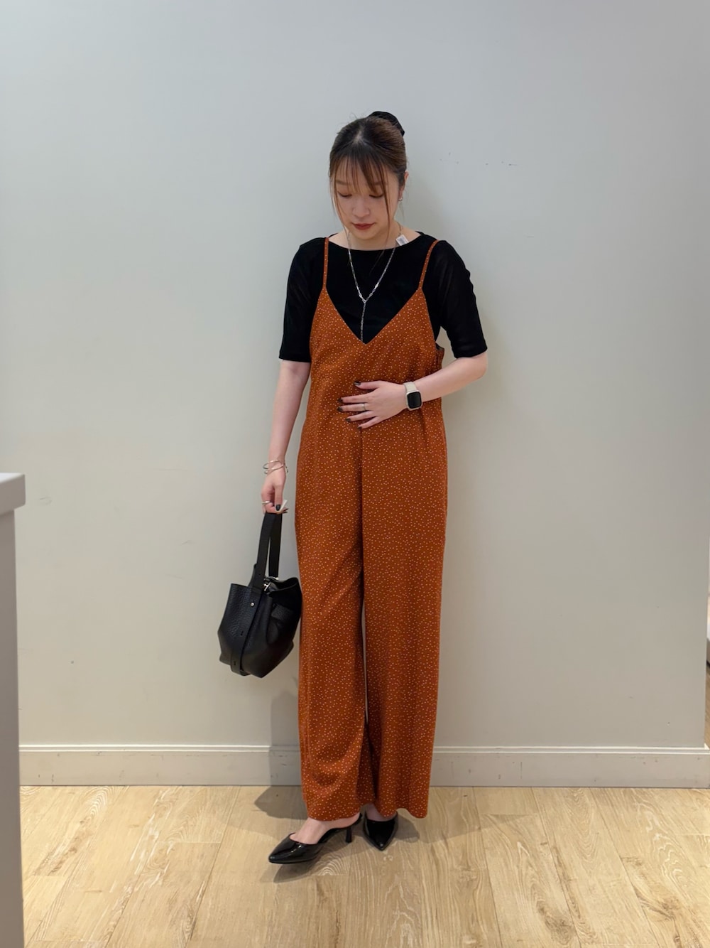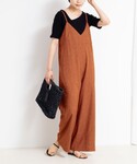 リアバイアイテム着回しコーデ🖤 ⦿トップス ベロアのような表面感が特徴の秋らしい半袖カットソーで縦横に伸縮するチュール素材で、快適な着心地! フロッキーの起毛感がありながらチュールの通気性により、暑い時期でも初秋の雰囲気を演出してくれる、端境期に使いやすいアイテム✨ボートネックがデコルテ周りをきれいに見せてくれるポイント✨✨ デニム合わせのカジュアルスタイリングから、きれいめスカート合わせまで、様々な着こなしを楽しめる1枚です! 同素材でカーディガンもございます🙋🏻♀️ ⦿オールインワン バストコンシャスなキャミソール型オールインワンで、レーヨンにリネンをブレンドした、暑い時期に涼しく楽に過ごせる1枚✨ 深めのVゾーンで甘さを控えてシャープな印象に!背中のコードで、長さと開き具合の調節が可能🙆🏻♀️ 裏地なしで肌離れが良く、落ち感のある素材で大人も着やすい、小さめランダムドット柄と小花柄の2パターンございます🙋🏻♀️夏から秋口まで長く活躍するアイテム✨