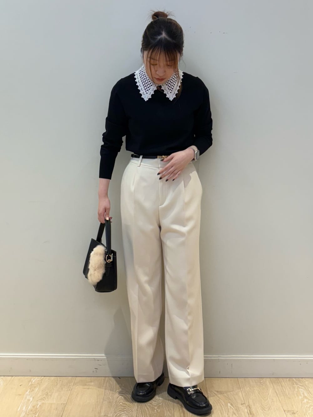 ⦿プルオーバー 取り外し可能な白のレース衿がアクセントのプルオーバーニット!! ボディは滑らかなレーヨンストレッチ素材なのでチクチクせず着やすいです!✨ 伸縮性があり心地よい着心地が魅力で、きちんと感と程よい甘さがちょうどいい1枚に✊🏻 ボトムによってオンにもオフにも活躍でき、襟を取りはずせば、シンプルなニットになり着回し力抜群✊🏻 ⦿パンツ NOLLEY'S定番人気の愛されパンツの新型が登場! 太すぎないシルエットで、オンオフ問わず着回しやすいワイドパンツで軽く柔らかな膨らみ感が特徴✨ ウォッシャブル可能なイージーケア素材なのもおすすめポイント✨ センタープレス入りで、きれいめにもデイリーカジュアルにもマッチし、スニーカー合わせもおすすめ◎ 何枚でも欲しくなるイチオシ万能パンツです🫣
