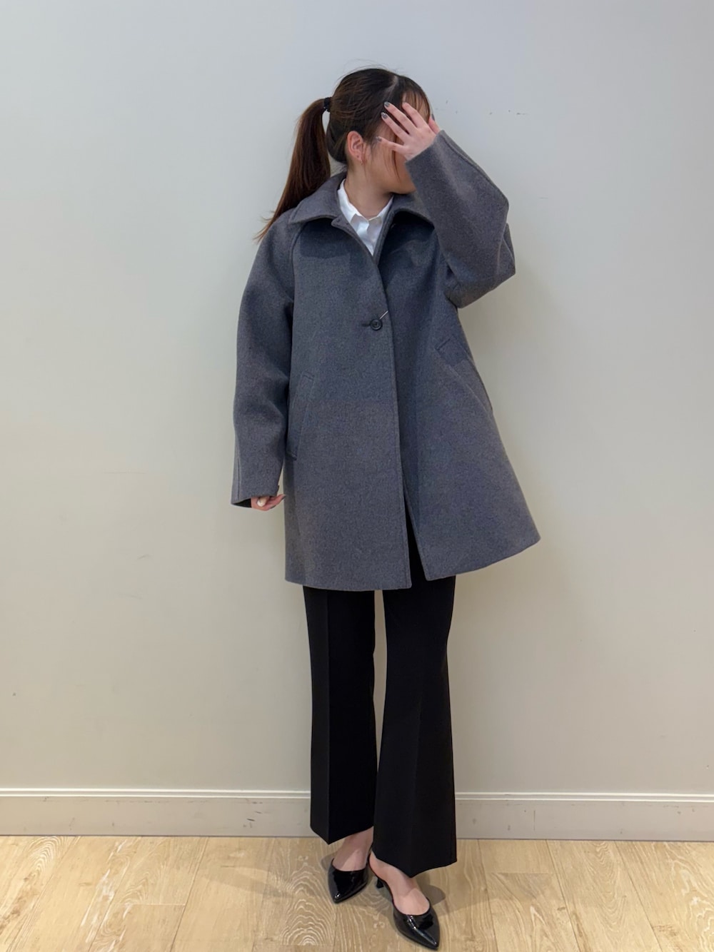 本当は同素材でセットアップございますが 今回はよりスッキリみせたく、パンツを別ものと組み合わせてみました!! ⦿コート 高品質なサスティナブルウール素材(リサイクル原料)を使用した二重織のハーフ丈のウールコート!! 今季トレンドのステンカラーコートで、スタンドカラーにもなる2WAYの衿デザインで、スタンダードでありながら、こなれ感もある1着✨ 程よくゆとりのあるシルエットで、厚手のニットにも合わせやすいのが嬉しいポイント👍🏻 今季も主流のワイドパンツやロングスカートとバランスがとりやすく、軽やかに見えるこだわりの着丈バランスなのもポイントです✨ 二重織でしっかり暖かいコートですが、着るとより実感出来る軽い着心地です!! ⦿シャツ シャツにビスチェを合わせた新鮮なデザインのブラウス!! きちんとした華やかなスタイリングが叶う一枚なのに。シャツ地はポリエステルにしわ加工を施し、程よいリラックス感もあり、なんと言ってもポイントはノーアイロンでの着用が可能✨ シンプルなパンツやタイトスカートと合わせてオケージョンなどにも活躍間違いなし!! ビスチェ部分と同素材(5-0035-6-09-003)のパンツもございます!! ⦿パンツ ノータック、センタープレス入りのきれいめパンツ!! 膨らみと落ち感のあるギャバ素材を使用してあり、強撚のサラッとしたタッチ✨ バックスタイルにスリットデザインのあるセミフレアシルエットなので、細見えを叶えてくれます🍀 ブーツなど秋冬の重くなりがちな足元に抜け感も👍🏻 後ろのみウエストゴム仕様できちんと見えながら履き心地も快適です!!