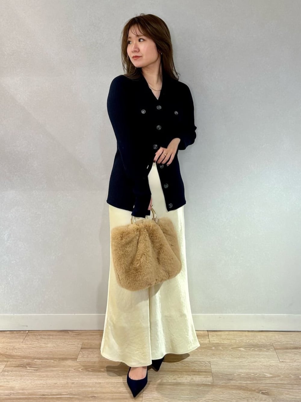 \ 低身長&骨格ストレート / 骨ストの着痩せコーデ😆👍✨ リブカーディガンは伸びがいい素材なので バスト周りも窮屈感なく着れます!! (釦と釦の間が開いてインナーが見えちゃうなんてこともないです◎) カーディガンの着丈は長め! 釦は下3つくらいは開けて着ると 自然とくびれが出来てくれます☺️ ボトムも選ばないトップスです🙆