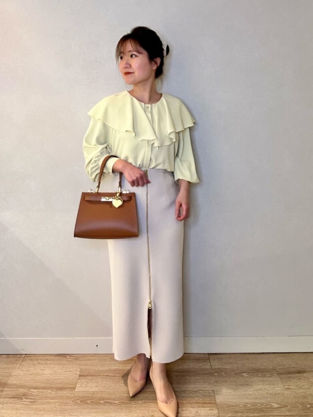 スカート、ブラウス共に デイリーからセレモニーまで 幅広く使えるアイテムです☆ ブラウスは、ライムっぽい優しいイエロー ワンサイズですが大きすぎないサイズ感で 小柄さんにも着やすい、着映えブラウス✨ スカートは、ブラックをリアルバイしていて 年中使える万能タイトスカート🐦⬛ ストレッチ性の高い生地で、ウエストもゴム なので自転車も乗れちゃいます👍