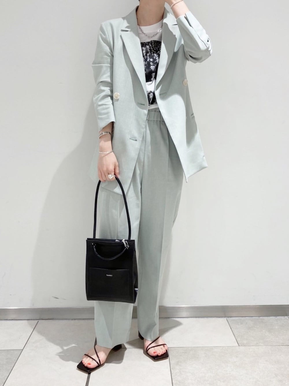 おすすめのセットアップ! ジャケットの中はTシャツでカジュアルに👚 グリーンが新鮮です💚 Instagram👉@nojiri_nol