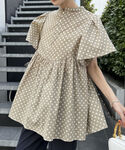 柔らかく軽い着心地のブラウス✨ サラッとした肌に張り付かない素材とサイズ感で、涼しく着られます。 お袖のフレア感やペプラムに切り替えたシルエットが1枚で着映えします👀 パンツはウエストゴムでストレスフリーです。 ぴたっとしすぎないシルエットなので、程よくスッキリした形です。 ドライなタッチで吸水速乾性、洗濯機でも洗えます✨✨