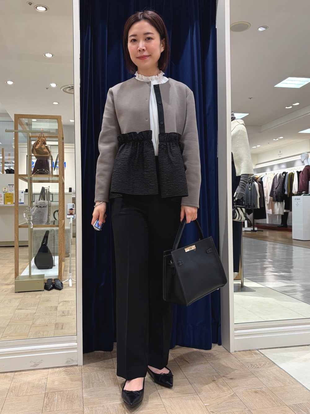 nolleys sugimo (ノーリーズ神戸大丸店)のブルゾン「《セットアップ対応》ウォッシャブルエアボールジャガードペプラムブルゾン」を使ったコーディネート