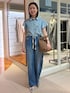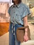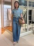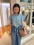予約でも人気のラッフルシャツ❣️ 袖のフリルがほどよくカジュアルになり過ぎず 普段のコーデにも取り入れやすいです。 脇の部分も開きすぎないので安心✨️ 柔らかい生地感で、ブラウスとしても、前開きで羽織りにもつかえます。 デニムパンツは 分厚すぎない柔らかい生地感と、肌離れするサイズ感で暑い時期にも着やすいです。 紐はしまっても、出してアクセントにしても🙆🏻♀️ シルエットも太すぎないので、意外とスッキリと履けました。