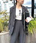 大人のミニスカートスタイリングです。 グレー×ネイビー×ブラックのダークトーンでまとめることで落ち着いた印象に。 ミニスカートもヒップまで隠れるテーラードジャケットで合わせれば、カジュアル過ぎずに着ていただけます。 大人気のハーフジップニットは襟を出して、ポイントにしました! ジップをあげてタートル風に着てもオシャレです。(動画にジップを閉めたスタイルも載せています!) ミニスカートは程よい厚みのある生地感で体のラインを拾いにくいのが嬉しいポイントです。