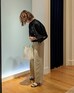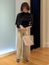 パールがかわいいアンサンブル トレンドのシアー素材のカーデとハイネックを合わせてコーデしました。パールボタンが少し大きめでかわいいです☺ トップスがすっきりめなのでボトムスはワイドパンツにしてバランスよくしました👍