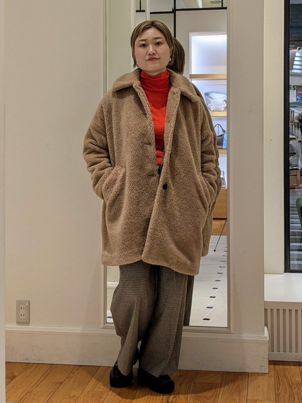 リアルバイコーデ アウターもセットアップもリアルバイです。 もこもこした素材感が可愛いコートは軽くて着やすい点が気に入ってます🐻丈も長過ぎないので動きやすいです! ゆとりがあるのでインナーダウンや厚手のニットも中に着ていただけます。 今回はジャケットと合わせてみました。 中に着たセットアップは上下別々でも使いやすく重宝しています。カジュアルに着崩すことが多いのでジャケットのインナーは他にはロンTを合わせることが多いです。 着用後はハンガーにかけていたら、シワはあまり気にならないです。