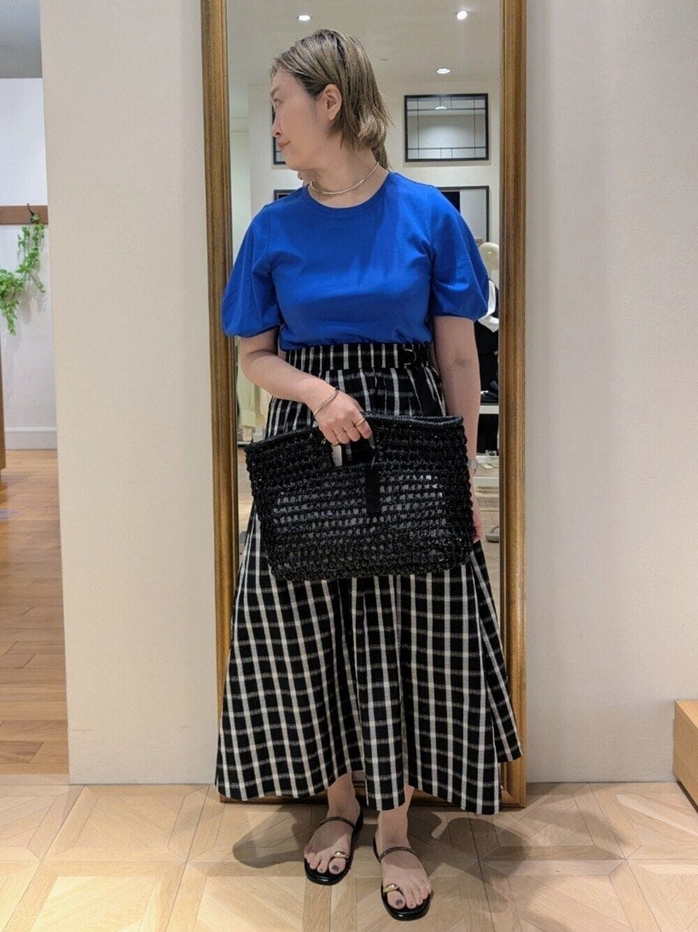 nol takami(ノーリーズ&グッドマンららぽーとEXPOCITY店)のかごバッグ「【BAGMATI/ バグマティ】ラフィアかごバッグ【PR林☆別注アイテム】」を使ったコーディネート