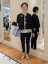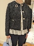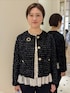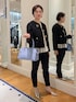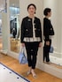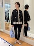 ジャケット⋯ノーリーズ45周年を記念して作られたカラミ織りのジャケット。ツィードの産地として有名な尾州にて職人さんが丁寧に織り上げたフラッグ糸を使用した希少価値の高いアイテムです。細かなドット模様もかわいいです☺️ 裏地付きですが、かなり軽くて着心地が良いです! 1枚で華やかなのでシンプルなアイテムと相性が良いです。 ブラウス⋯ノーリーズの定番、オトナサテンシリーズ。 裾のチュールがポイントで、短め丈のジャケットやニットと合わせると今年らしく着ていただけます。もちろん、丈長めのジレに合わせても可愛いです。 生地は二重になっており、ブラウスでも薄手すぎない素材です。 パンツ⋯いつもは38サイズですが、こちらはサイズが売り切れていたため36サイズを着用しています。ですので少しぴったりめなシルエットになっています。 ストレッチが効いていて、ウエストゴムなので細身シルエットでも履きやすいです。裾のチュールがポイントです😃