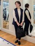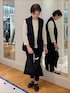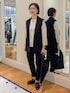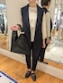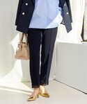 ジレ⋯ダブルボタンデザインがポイント。柔らかくて着やすく、普段もカットソーなどと合わせて使っていただけます。 ベルト付きで前で留めることもできます。 防シワ加工で扱いやすく、ご自宅洗いも可能です。 ブラウス⋯裾のチュールがポイントのブラウス。首元は開きすぎない丸首でセレモニーに使いやすいです。 ニットと重ねて普段使いにしてもかわいいです。 ノーカラーのジャケットとも相性良く、幅広く使えておすすめです。 パンツ⋯普段は38サイズを着用していますが、サイズがなかったため今回36サイズを履いています。 細身シルエットですがストレッチが効いていてとても履きやすいです。裾のチュールがさりげなく甘さをプラスしてくれます♡ バッグ⋯取り外し可能のパールチャーム付きです。ラメが華やかで、普段にもセレモニーにもおすすめです。 軽くて持ちやすいデザインです。 ローファー⋯とても軽くて柔らかい履き心地です。かかとを踏んでスリッポン風にも履いていただけます。
