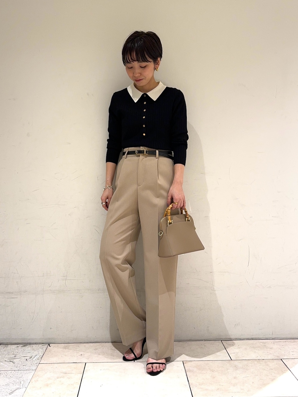 店頭でも大人気の襟付きニット。 程よい甘さときちんと感のあるアイテムなので 通勤やセレモニーにもおすすめです! 身体のラインを拾いすぎず、 すっきり見せてくれます。 36、38サイズ展開なので、小柄さんにも◎! パンツはシワになりにくく お手入れも安心な万能アイテム! センタープレス入りできれい見えします。 フルレングスで着丈は少し長めです。 裏地付きですが、厚すぎない素材なので 真夏以外はお使いいただけますよ! knit:38サイズ pants:34サイズ