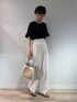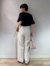 夏の通勤着にもおすすめのコーディネート。 ニットはサラッとした素材感で とても軽い着心地です。 袖部分が少しシアーになっており、涼しげ✨ 着丈が長すぎず、裾がリブになっているので ボトムにインせずに着たい方にもおすすめです! パンツはベルト付きできれい見え👖 ウエスト位置が高めになっていることで、スタイルアップ! 着丈はフルレングスです。 白は裏地が付いており、透け感も少なく着用できます。 knit:38サイズ(ワンサイズ) pants:36サイズ