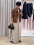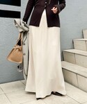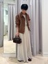 おすすめブルゾンコーデ🍂 キャメルのスエードブルゾンは 今年を持っておきたいトレンドアイテム! 衿つきブルゾンは ボーイッシュに見えがちですが、 柔らかいスエード素材かつ、 着丈がすっきりコンパクトなので 甘め、きれいめアイテムとも着回しやすい✨ ブルゾンはワンサイズですが 大きすぎず、小柄さんにも着用いただけます! 袖周りはゆとりがあるので ニットやスウェットでも⭕️ スエード素材に異素材合わせで 光沢感のあるスカートを☺️ 小物も茶系にすることで まとまりがでます! バッグはレオパード柄でアクセントに! blouson:ワンサイズ inner:ワンサイズ skirt:38サイズ