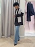 ジャケットのカジュアルコーディネート! ジャケット×デニムコーデに ポイントでボーダーカットソーを肩掛け🖤 コーディネートのメリハリになります☺️ ジャケットはとても軽い着心地で 裏地がないので夏まで使うことができます。 また、お洗濯も安心で 水洗い可能! 洗濯後ノーアイロンで着用できました✨ シワにもなりにくく お仕事など遠出のシーンにもおすすめ⭕️ インナーにはレース付きのニットを 合わせて程よく甘めアイテムを! jacket:38サイズ inner:ワンサイズ denim:Sサイズ