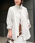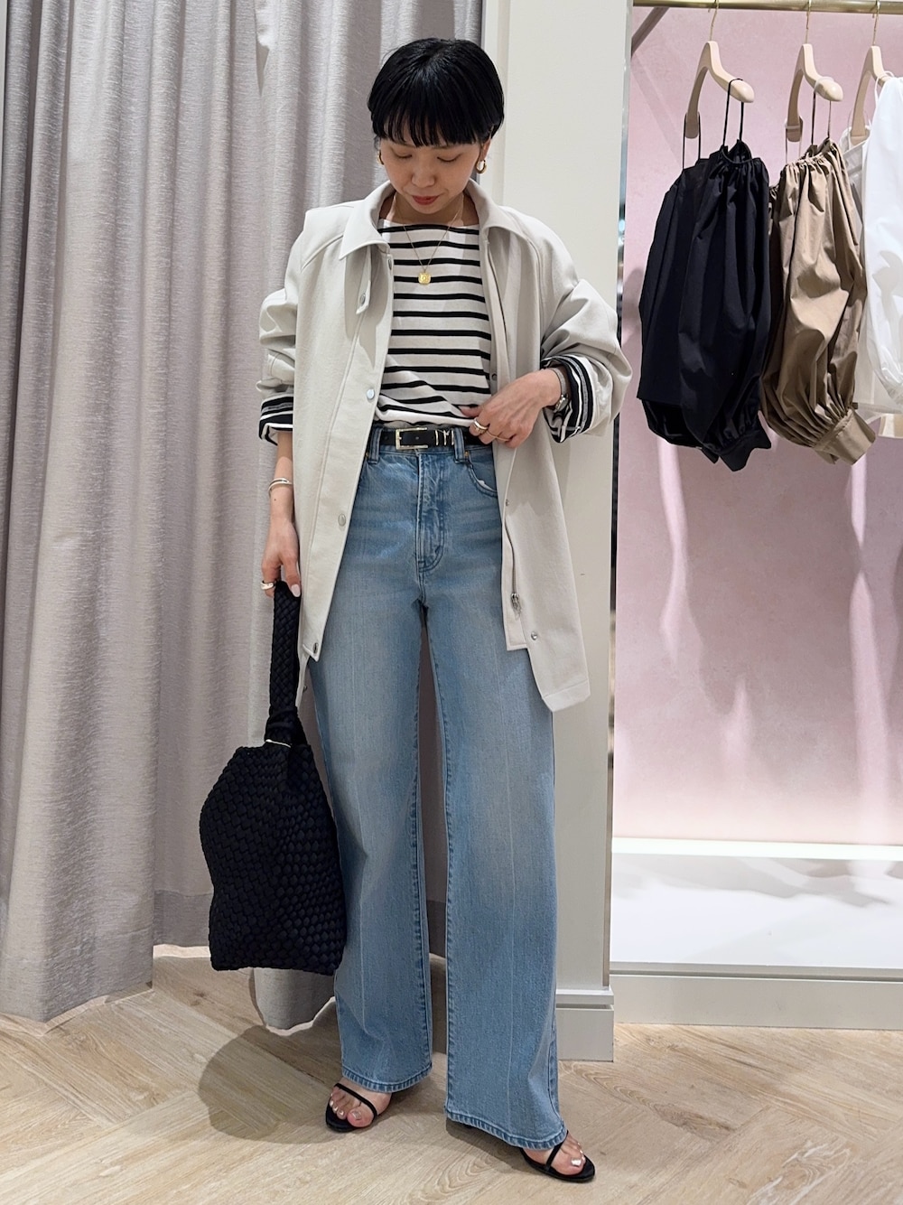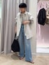 春アウターコーデ🧥 薄いベージュのカラーは ON/OFFともに着回しの効くカラー! 衿は立てて、スタンドネックにすることも可能! シワになりにくく、お手入れも安心! 白よりもインナーの透け感が出にくいので ボーダーなどの柄物とも⭕️ 154cmで38サイズ着用していますが 大きすぎることなく着用できています! ゆったりカジュアルな合わせが好きな方は 小柄さんでも38サイズも素敵です! アウターの袖から柄を出すことで 少しこなれた印象になりますよ✨ outer:38サイズ tops:ワンサイズ denim:Sサイズ