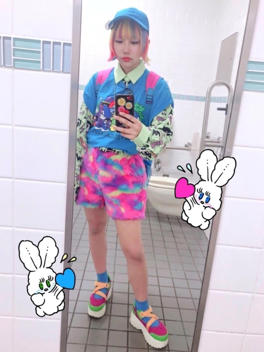 9月頃に着たコーデ💖🦎 テーマは「遠足」^ - ^ ブルーをベースにしたよ(๑╹ω╹๑ ) ファーのショートパンツ、時期的に早まったけどカワイイからいっか!✊😊