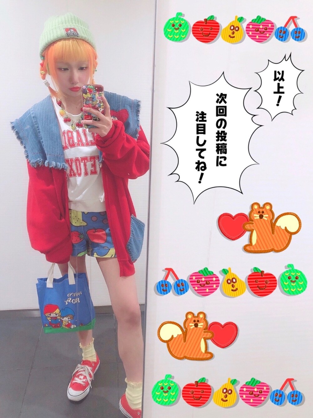🍎🧩🍏 美容院 帰り 🍎🧩🍏 トップスはLOVE TOXIC。 高校生のとき働いたのでいくつか持ってますが 、最近はごぶさたでした ぜったい白で合わせたかったので死ぬ気でさがしたら出てきました 丈がみじかめなのでバランス取れる😆 ショーパンはブルーのフルーツ柄。 ウエストがゴムなのでらくちん😆 galaxxxyはユニセックスのフリーサイズが多いので助かってます そんなショーパンのブルーに合わせて、かばんもブルー。 雑貨屋ミケちゃんでゲット🐈🧩 意外と入るよ ネックレスもフルーツモチーフにしました アウターとスニーカーは赤合わせ🍎 くつしたをきいろ🍌にしてバランス取って、 ひさしぶりにかぶったニット帽はきみどりで外しました🍏 全体的にカジュアルやけどお気に入り!