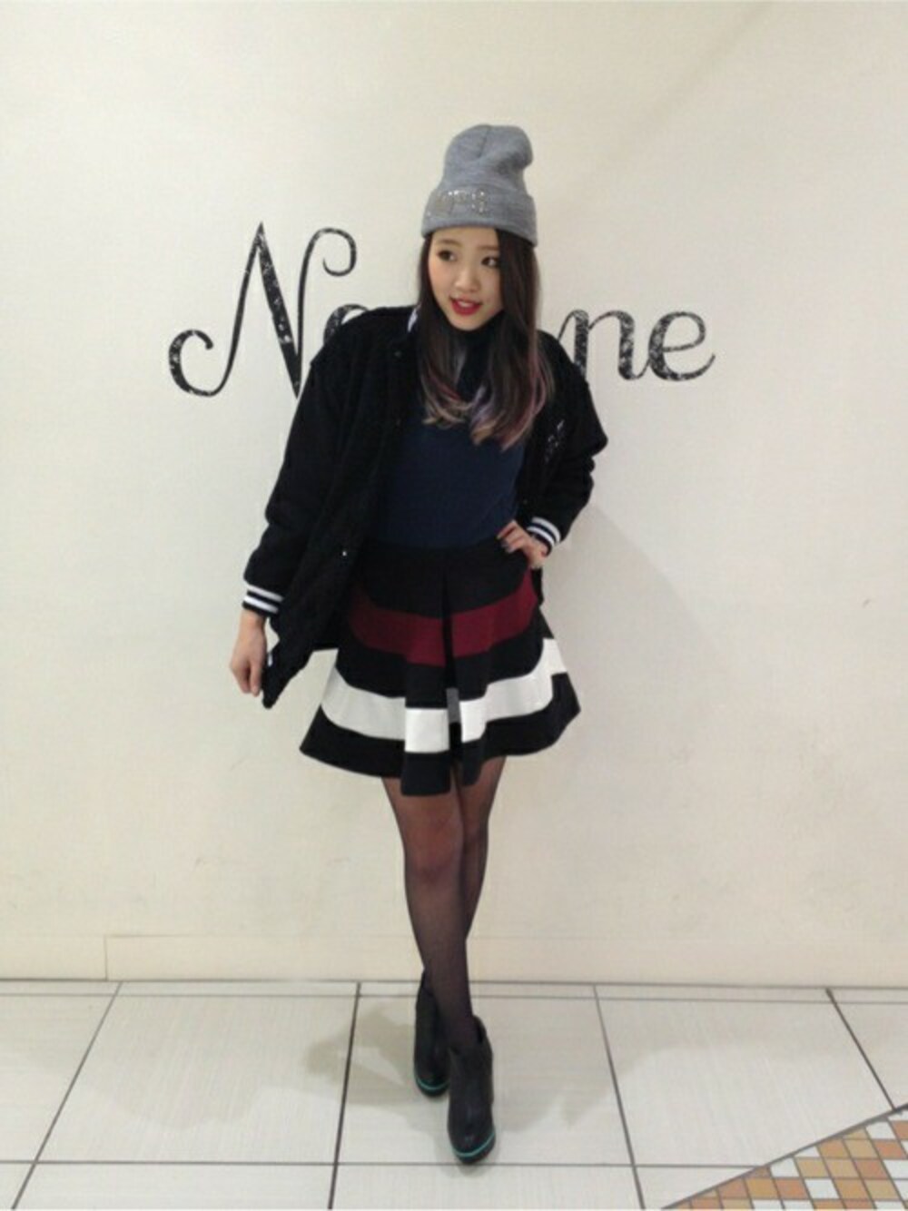 Nomineらしさ満載のスケータースカート☆ モコモコスタジャンで冬に向けての暖かいコーディネートです♪