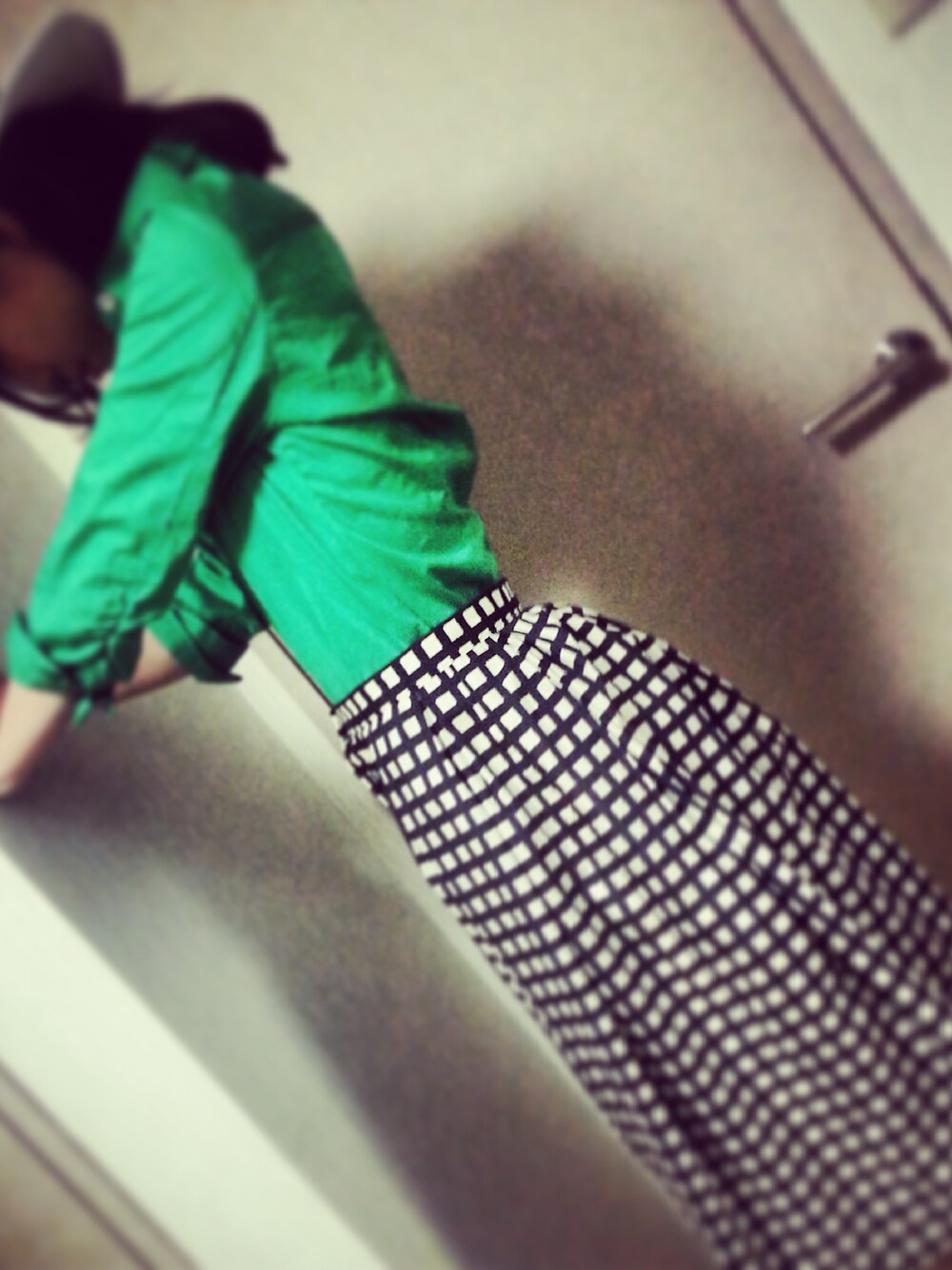 緑✕白✕黒 shirt ノーブランド スカート 古着 ハット ノーブランド 色があると気分がアガる!