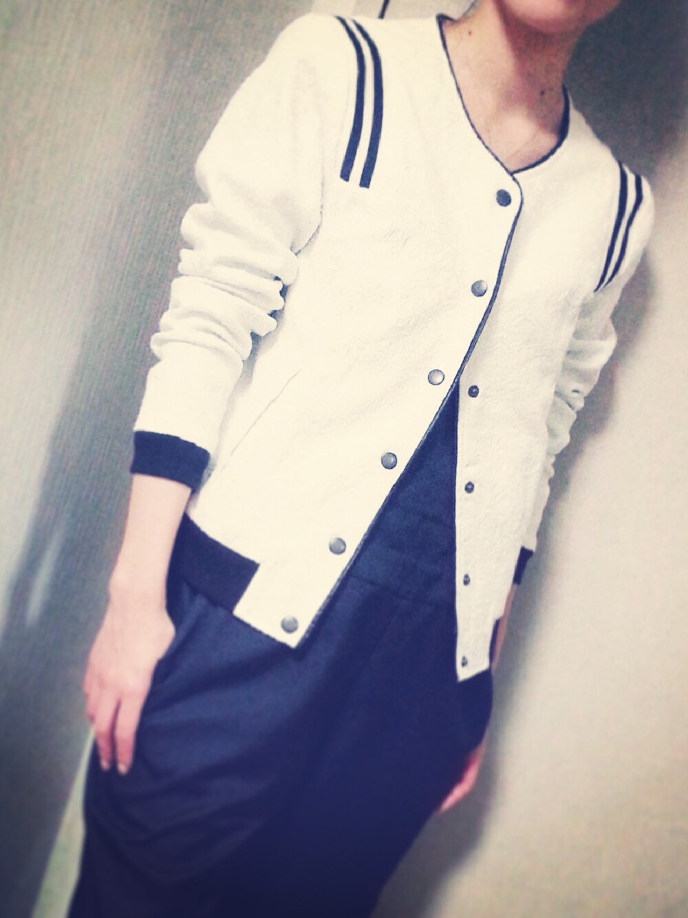 スポーティーな格好にハマってるの✡ ブルゾン just female(ROSE BUD) サロペット ブランド不明 モノトーンも、たまにはいーね! ブルゾンは、レースでキレイ目なかんじ。