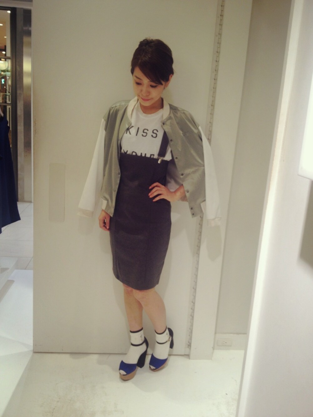 ハイウエストとサスペンダーで 縦長効果(*´×`*)