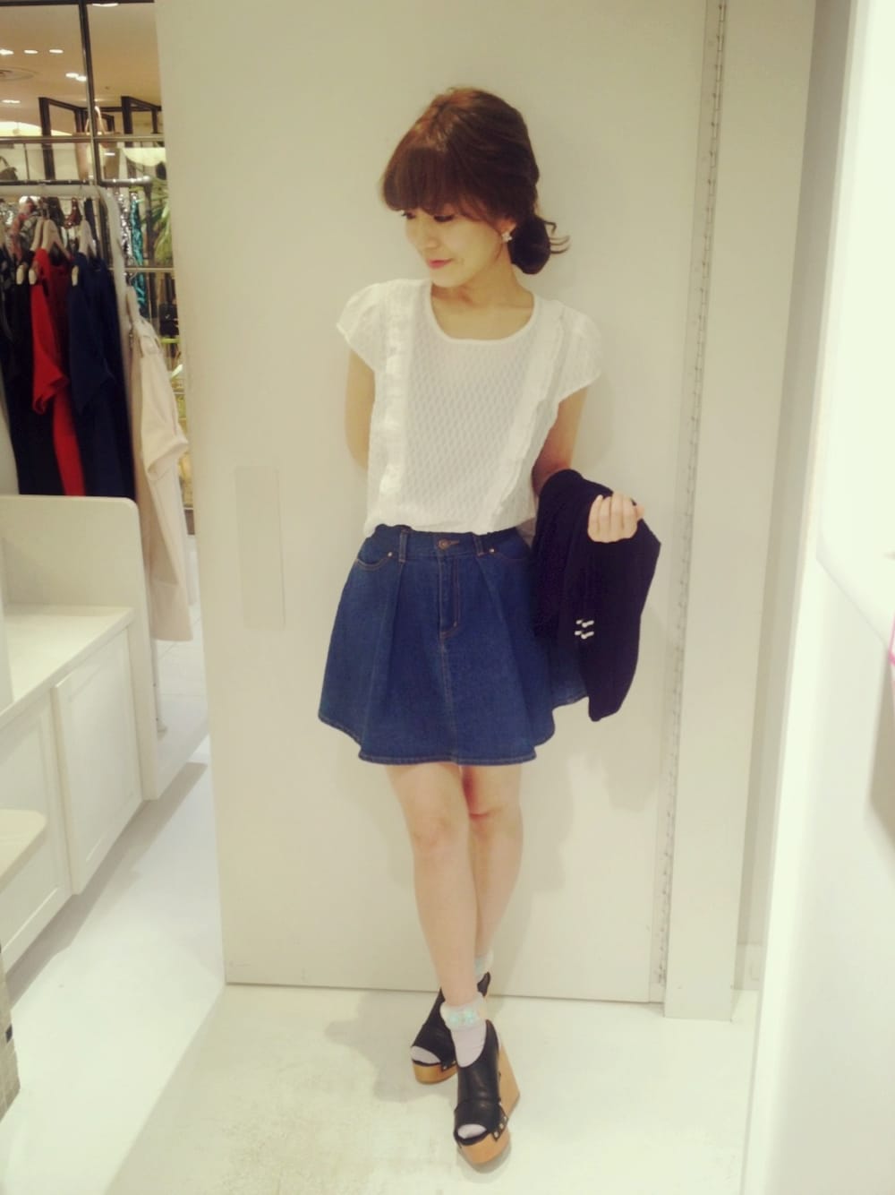 モモのデニムスカート「タックデニムフレア」を使ったコーディネート